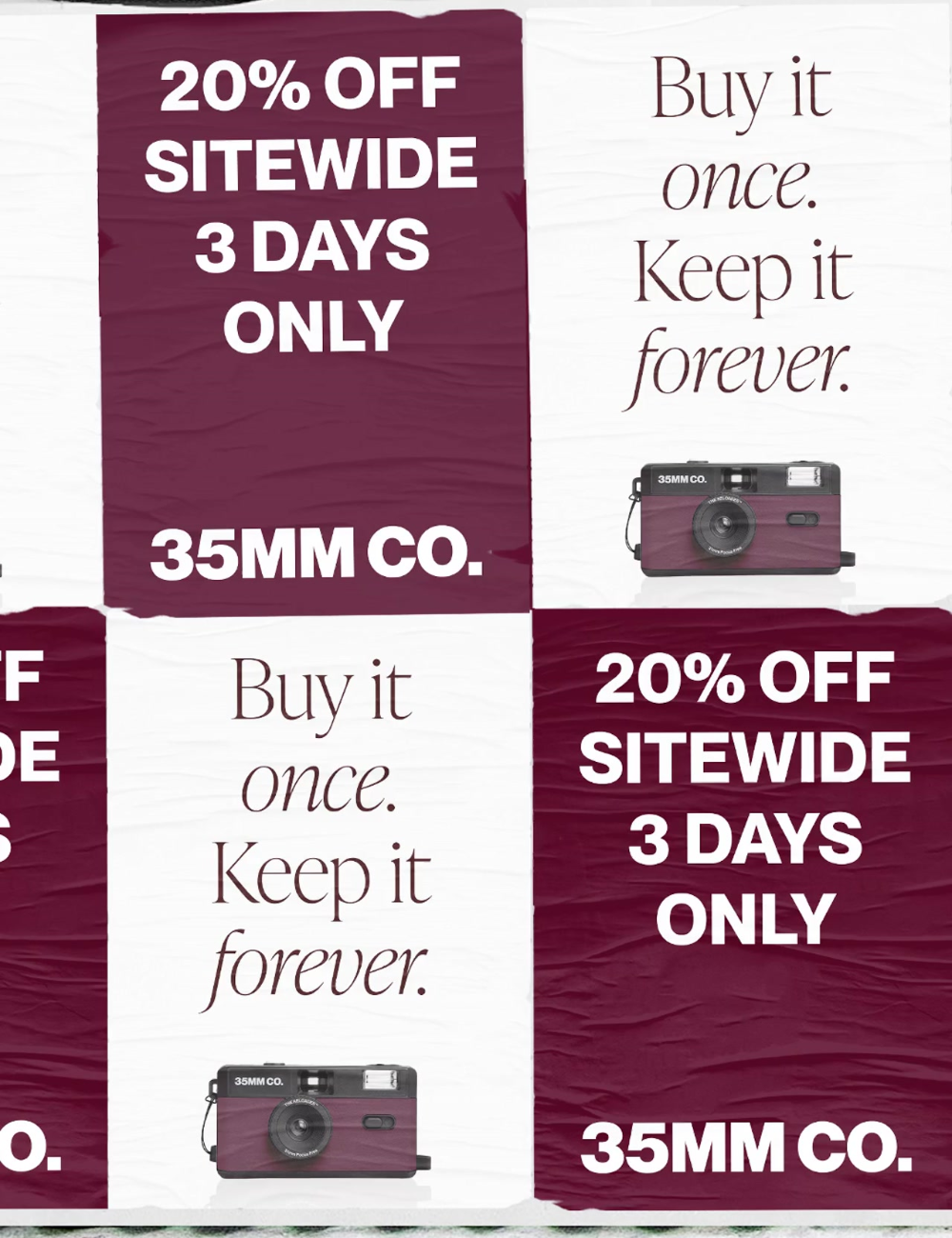 Reload (and relive) your greatest memories with 35mm Co’s signature film camera. Load up the film for grainy, atmospheric memories that will last a lifetime.Load, shoot, repeat with our must-have memory maker.
